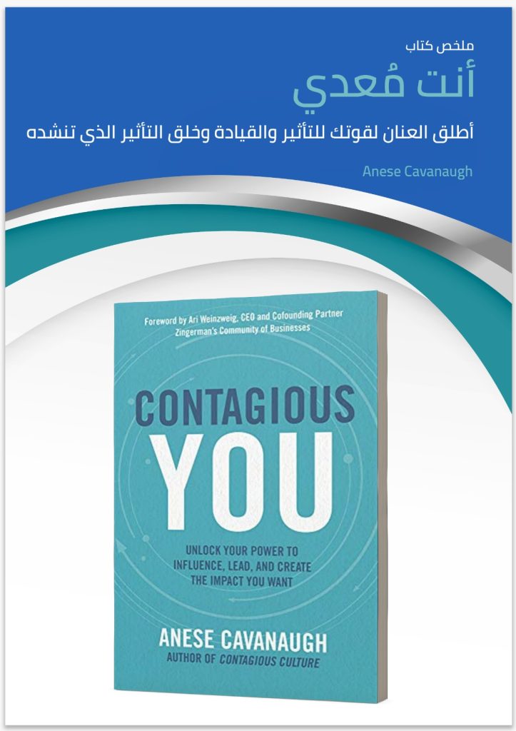 كل شخص في المنظمة هو قائد، والقادة لديهم قوة هائلة للتأثير على التابعين، توضح المؤلفة أنيس كافانو في كتابها « أنت مُعدي » أن جودة قيادتنا تستند إلى أهدافنا وطاقتنا وحضورنا ، من خلال التأكيد على الإبداع والرعاية الذاتية والقدرة على الاستجابة ( وليس المسؤولية ) كمهارات قيادية، وتعزيزات ثقافية، توضح لك كافانو كيفية السير على طريق قيادة أكثر فاعلية رغم وجود بعض الحواجز.