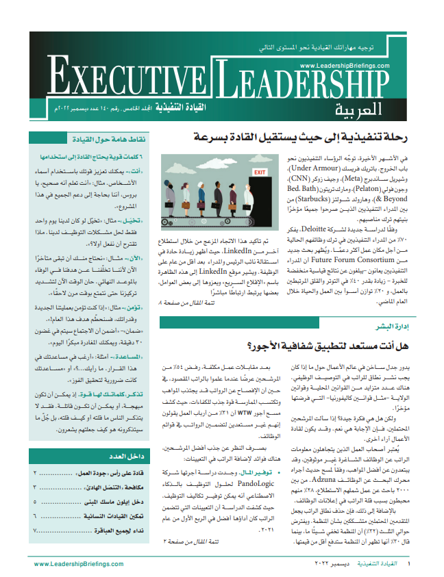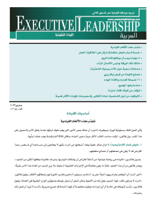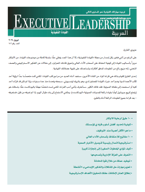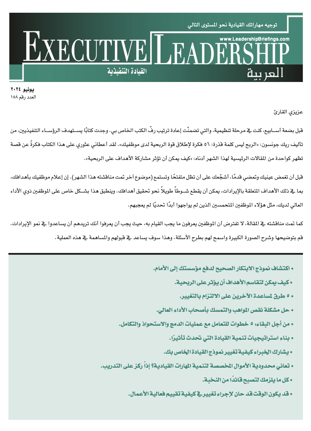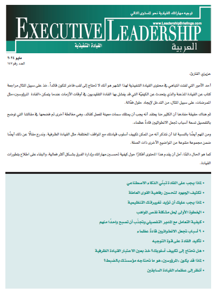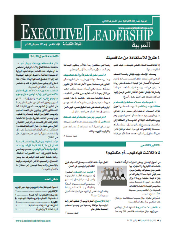 تعرض مختارات من بحوث ومقالات وأفكار من أفضل وأشهر مجلات الإدارة العالمية مثل هارفارد بيزنيس ريفيو، نيويورك تايمز، مجلة أعمال واشنطن وغيرها، ويشارك في تحريرها العديد من العلماء والمفكرين في علم الإدارة منهم روبرت س. كابلان، بيتر برجمان، مايكل بورتر وغيرهم