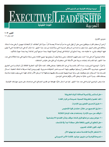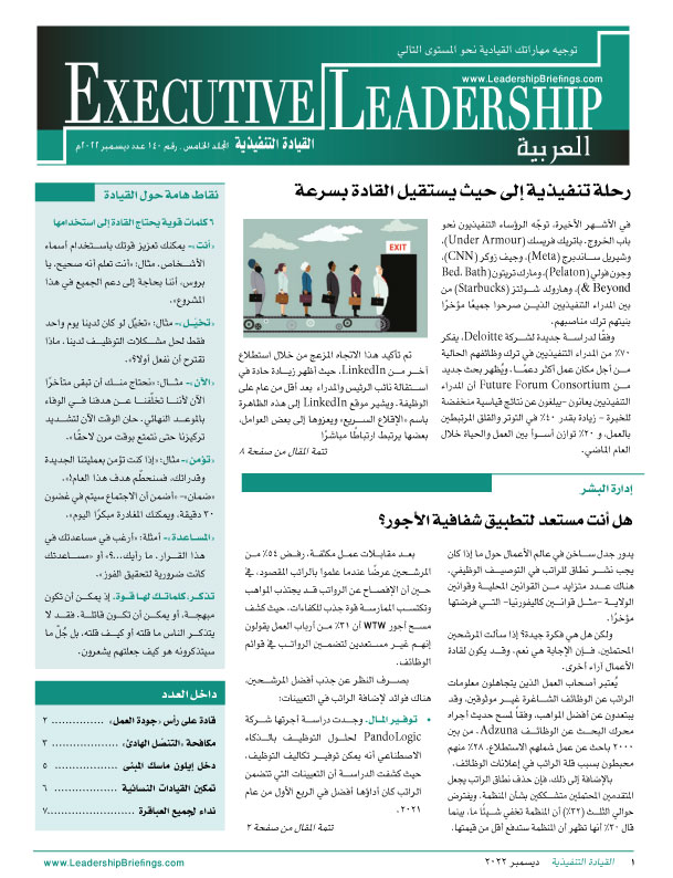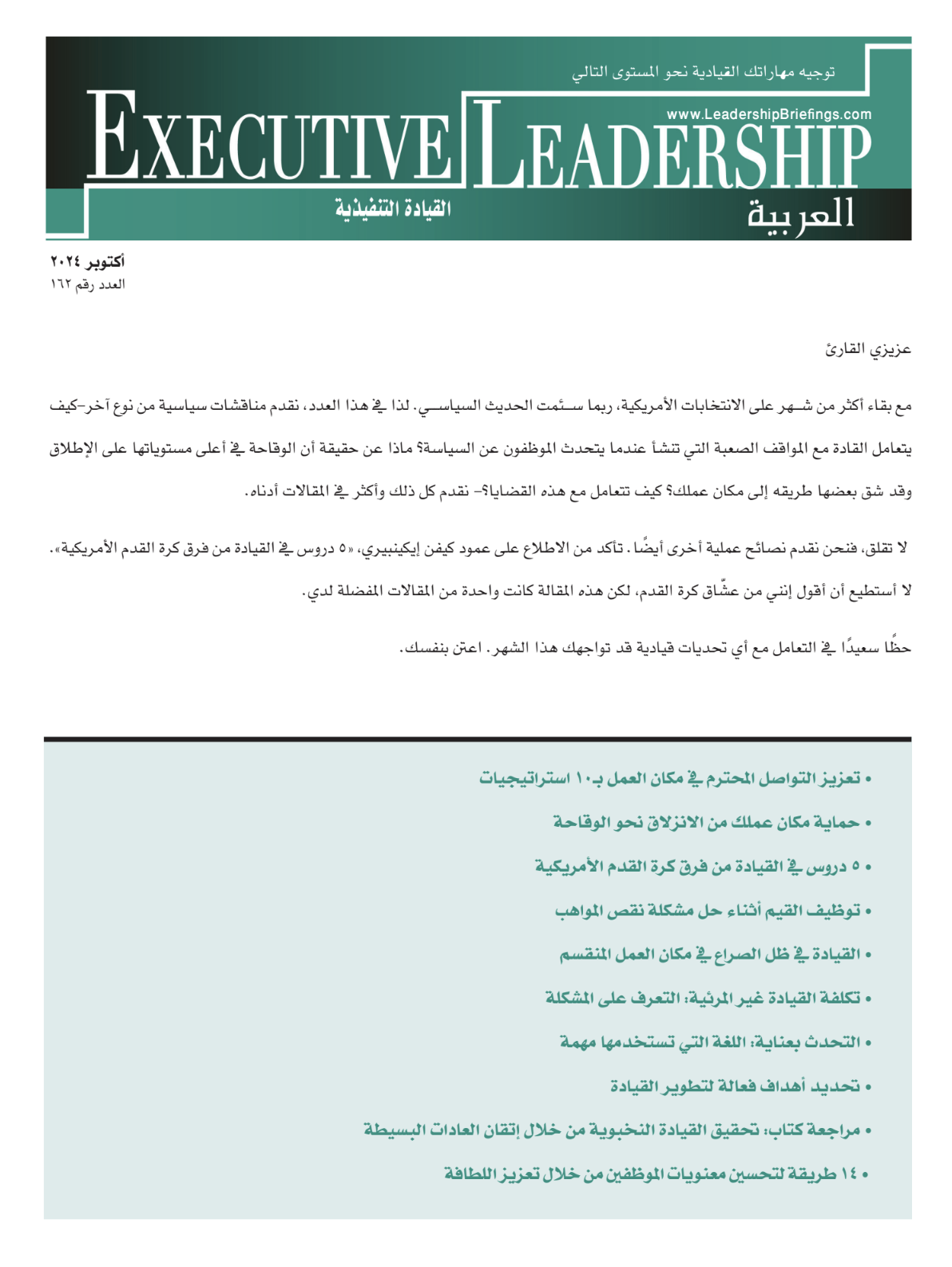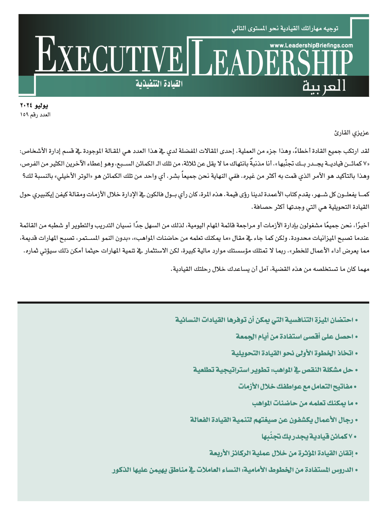 تعرض مختارات من بحوث ومقالات وأفكار من أفضل وأشهر مجلات الإدارة العالمية مثل هارفارد بيزنيس ريفيو، نيويورك تايمز، مجلة أعمال واشنطن وغيرها، ويشارك في تحريرها العديد من العلماء والمفكرين في علم الإدارة منهم روبرت س. كابلان، بيتر برجمان، مايكل بورتر وغيرهم